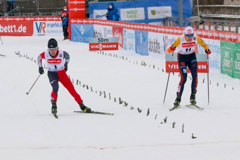 Nordische Kombination: Bildergalerie vom Saisonfinale Kampf bis zur Ziellinie: Ryota Yamamoto sprintet gegen Vinzenz Geiger zu Platz fünf. © Volk/NordicFocus 1 2 3 4 5 6 7 8 9 10 11 12 13 14 15 16 17 18 19 20 21 22 © Bilder 1 - 22: Volk/NordicFocus;