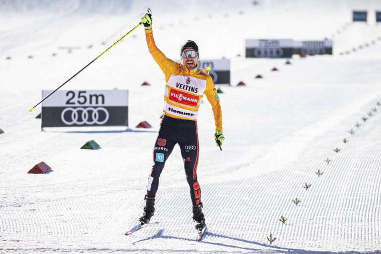 Nordische Kombination: Bildergalerie vom Teamsprint Fabian Rießle freut sich über den Sieg. © Modica/NordicFocus 1 2 3 4 5 6 7 8 9 10 11 12 13 14 15 16 17 18 19 20 21 22 23 24 25 26 © Bilder 1 - 26: Modica/NordicFocus;