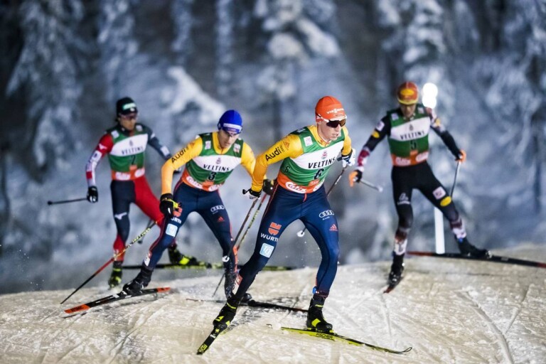 Nordische Kombination: Bildergalerie vom zweiten Einzelwettkampf in Ruka Eric Frenzel führte lange Zeit die Vierergruppe an. © Modica/NordicFocus 1 2 3 4 5 6 7 8 9 10 11 12 13 14 15 16 17 18 19 20 21 22 23 24 25 26 © Bilder 1 - 26: Modica/NordicFocus;