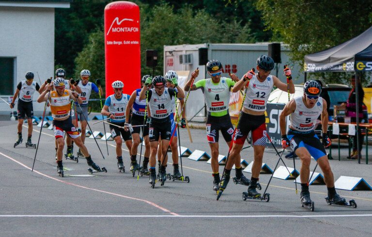 Nordische Kombination: Impressionen aus Tschagguns Thomas Joebstl (AUT) führte die Gruppe in die letzte Runde. © Sandra Volk 1 2 3 4 5 6 7 8 9 10 11 12 13 14 15 16 17 18 19 20 © Bilder 1 - 20: Sandra Volk;