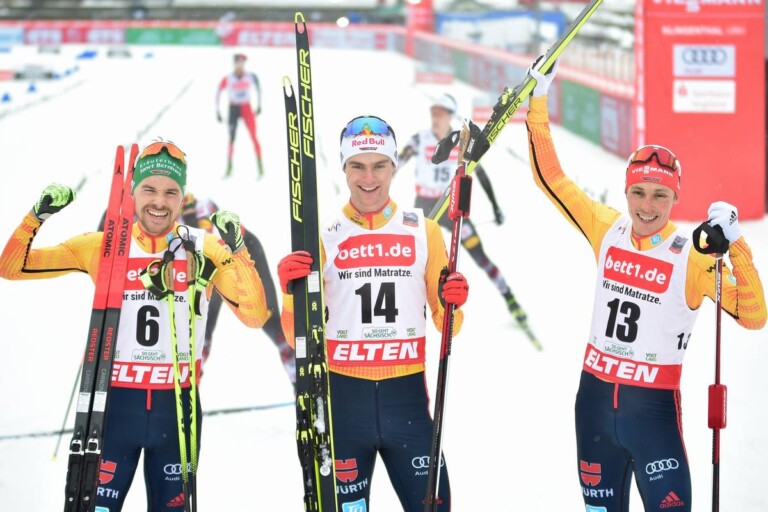 Dreifacherfolg: Fabian Riessle (GER), Vinzenz Geiger (GER), Eric Frenzel (GER). © Reichert/NordicFocus