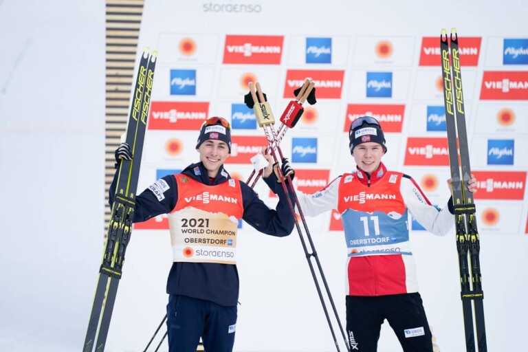 Nordische Kombination: Impressionen vom Einzelwettkampf der Herren auf der Normalschanze Zwei Norweger auf dem Podium: Jarl Magnus Riiber (NOR), Jens Luraas Oftebro (NOR), (l-r). © Thibaut/NordicFocus 1 2 3 4 5 6 7 8 9 10 11 12 13 14 15 16 17 18 19 20 21 22 23 24 25 26 27 © Bilder 1 - 17: Thibaut/NordicFocus; Bilder 18 - 27: Modica/NordicFocus;