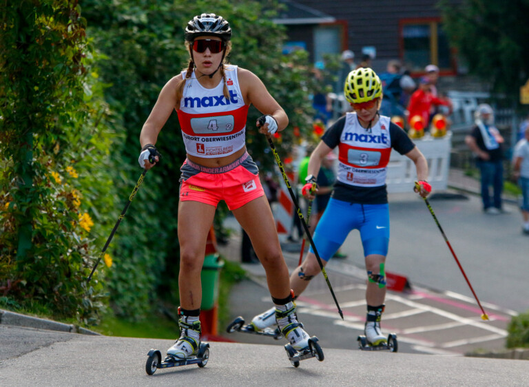 Nordische Kombination: Impressionen vom Mixed Team Wettkampf in Oberwiesenthal Sigrun Kleinrath (AUT) hat Stefaniya Nadymova im Nacken. © Sandra Volk 1 2 3 4 5 6 7 8 9 10 11 12 13 14 15 16 17 18 19 20 21 22 23 24 25 26 27 28 29 30 31 32 © Bilder 1 - 32: Sandra Volk;