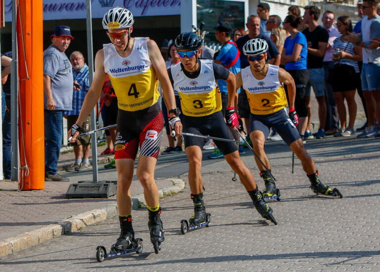 Nordische Kombination: Impressionen vom Sommer GP in Oberwiesenthal Franz-Josef Rehrl (AUT) führt die Spitzengruppe vor Akito und Yoshito Watabe (JPN) an. © Sandra Volk 1 2 3 4 5 6 7 8 9 10 11 12 13 14 15 16 17 18 19 20 21 © Bilder 1 - 21: Sandra Volk;