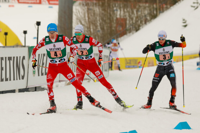 Nordische Kombination: Impressionen vom Teamsprint in Lahti Stefan Rettenegger (AUT I), Mario Seidl (AUT II), Manuel Faisst (GER II), (l-r) © Sandra Volk 1 2 3 4 5 6 7 8 9 10 11 12 13 14 15 16 17 18 19 20 21 22 23 24 25 © Bilder 1 - 25: Sandra Volk;