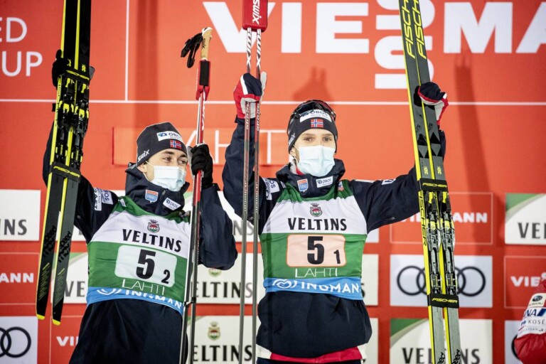 Nordische Kombination: Impressionen vom Teamsprint in Lahti Bester Springer und bester Läufer am heutigen Tag: Jarl Magnus Riiber (l) und Joergen Graabak (r). © Modica/NordicFocus 1 2 3 4 5 6 7 8 9 10 11 12 13 14 15 16 17 18 19 20 © Bilder 1 - 20: Modica/NordicFocus;