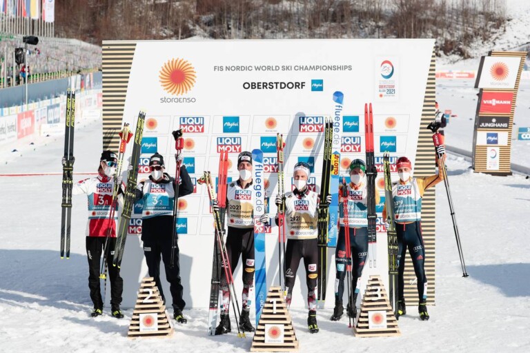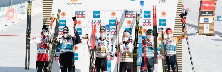 Nordische Kombination: Impressionen vom Teamsprint Das Podium: Espen Andersen (NOR), Jarl Magnus Riiber (NOR), Johannes Lamparter (AUT), Lukas Greiderer (AUT), Fabian Riessle (GER), Eric Frenzel (GER) (l-r). © Modica/NordicFocus 1 2 3 4 5 6 7 8 9 10 11 12 13 14 15 16 17 18 19 20 21 22 23 24 25 26 27 28 29 30 31 © Bilder 1 - 4: Thibaut/NordicFocus; Bilder 5 - 31: Modica/NordicFocus;