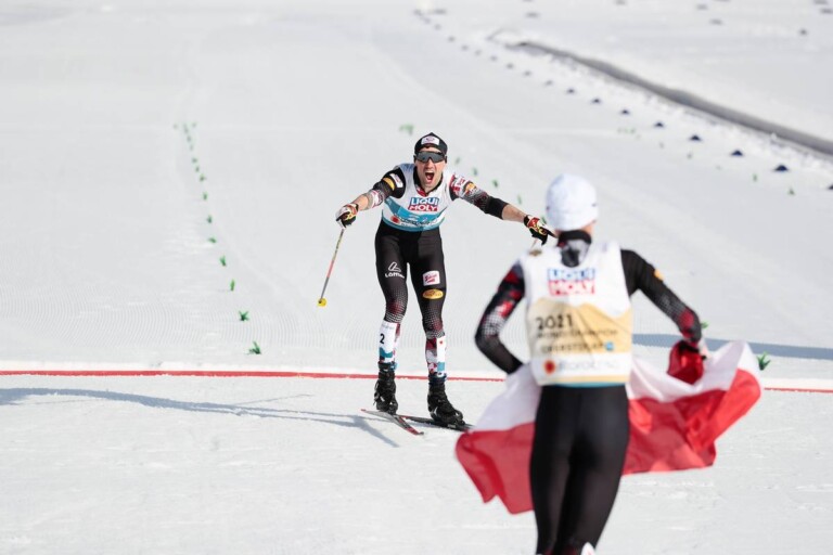 Nordische Kombination: Impressionen vom Teamsprint Johannes Lamparter erwartet Lukas Greiderer mit der österreichischen Flagge im Ziel. © Modica/NordicFocus 1 2 3 4 5 6 7 8 9 10 11 12 13 14 15 16 17 18 19 20 21 22 23 24 25 26 27 28 29 30 31 © Bilder 1 - 4: Thibaut/NordicFocus; Bilder 5 - 31: Modica/NordicFocus;