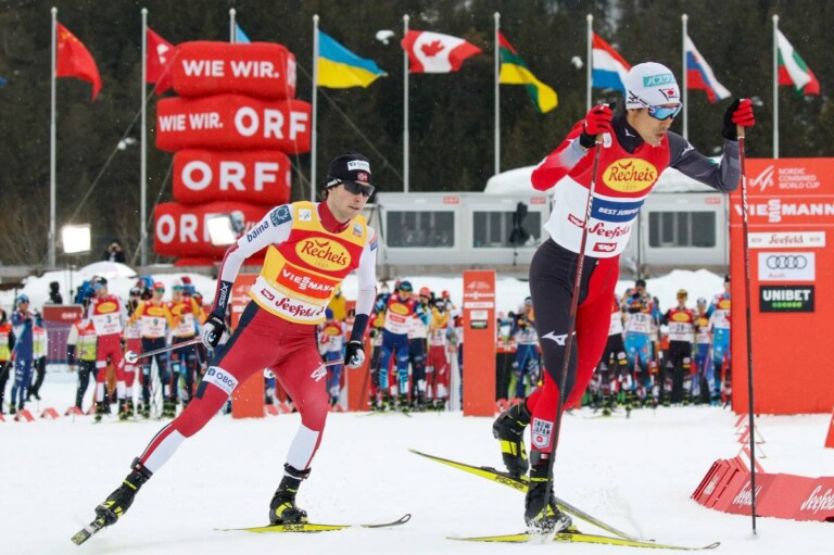Nordische Kombination: Impressionen von Tag eins in Seefeld Vom Start weg gemeinsame Sache gemacht: Jarl Riiber und Akito Watabe (l-r). © Volk/NordicFocus 1 2 3 4 5 6 7 8 9 10 11 12 13 14 15 16 17 18 19 20 21 22 23 24 25 © Bilder 1 - 25: Volk/NordicFocus;