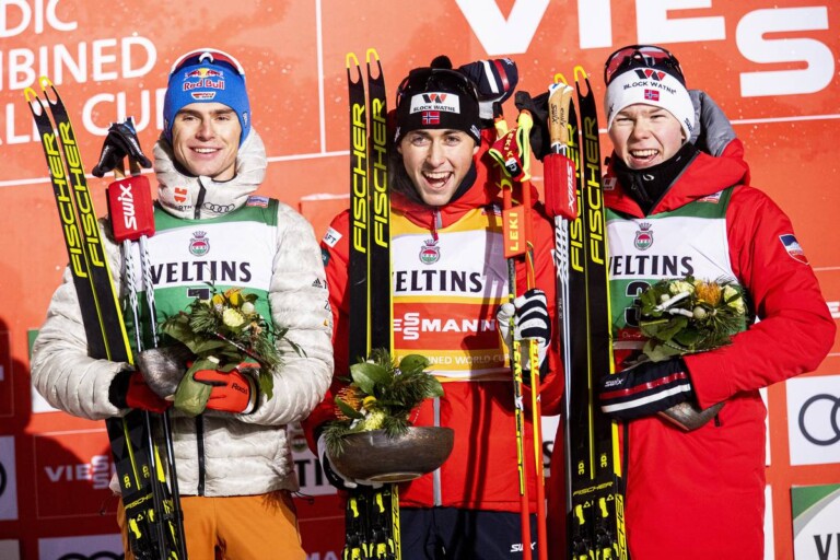 Nordische Kombination Ruka: Impressionen vom zweiten Tag Vinzenz Geiger (GER), Jarl Magnus Riiber (NOR), Jens Luraas Oftebro (NOR), (l-r) © Modica/NordicFocus 1 2 3 4 5 6 7 8 9 10 11 12 13 14 15 16 © Bilder 1, 3 - 11, 13 - 16: Modica/NordicFocus; Bilder 2, 12: Sandra Volk;