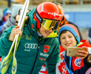 Der weiteste Sprung des Tages geschah bereits ziemlich früh: Szczepan Kupczak startete mit der Nummer 21. Der Pole ist im Weltcup relativ weit hinten platziert, weil er nicht der stärkste Langläufer ist. Springen kann er allerdings, und tut dies zur Zeit in einer Form, dass er regelmäßig die besten seiner Art ärgert. Heute hatte er auch noch Glück mit dem Wind – als Einziger hatte er Aufwind. Damit legte er sensationelle 136 Meter auf die Schanze. Dies ist die Weite des offiziell angegebenen Schanzenrekords, gehalten von Polens Legende Adam Malysz und seit gestern Abend eingestellt von Ryoyu Kobayashi bei deren Weltcup. Der weiteste hier gestandene Sprung stammt allerdings von keinem Geringeren als Eric Frenzel, der damit bei der Weltmeisterschaft 2013 den Grundstein für seine Goldmedaille legte.