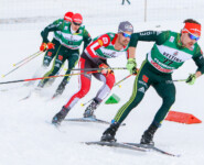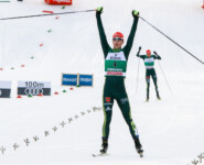 In die letzte Runde gingen Geiger und Rydzek zu zweit. Nun war klar, dass die beiden den Sieg unter sich ausmachen würden. Rydzek versuchte als erster eine Attacke. Am vorletzten, langen Anstieg riss er eine kleine Lücke. Doch dann kam die Abfahrt – und der Wind: „Ich hatte ein paar Meter Vorsprung, aber dann in der Abfahrt hat mich der Gegenwind etwas ausgebremst, da musste ich arbeiten. Vinzenz konnte seinen Überschuss mitnehmen und etwas Kräfte sparen“, berichtete Rydzek über die Situation. So kam Geiger wieder heran, und attackierte seinerseits am letzten, kürzeren Anstieg. Er legte eine dermaßene Frequenz vor, dass Rydzek gar nicht mehr groß versuchte, ihm zu folgen. So konnte Geiger seinen ersten Weltcupsieg gebührend genießen, denn am Ende hatte er 7,6 Sekunden Vorsprung auf den Vereinskameraden. Ganz nebenbei hatten Geiger und Rydzek auch noch die schnellsten beiden Laufzeiten im Feld.