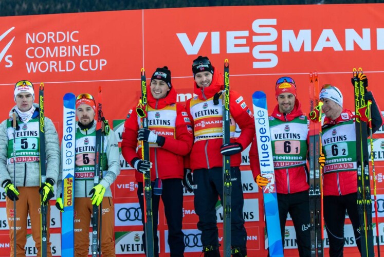 Aus deutscher Sicht gab es ebenfalls überwiegend zufriedene Mienen. Fabian Rießle für Team Deutschland I legte einen tollen Sprung auf 101 Meter vor, sein Teamkollege Vinzenz Geiger sprang auf 98 Meter – startete auf Antrag seines Trainers aber zwei Luken tiefer. Ihr Rückstand auf die Japaner nach dem Springen betrug 34 Sekunden, sie belegten die fünfte Position hinter Österreich I. Deutschland II wurde zwar zwischenzeitlich nur auf dem achten Rang geführt. Dennoch war insbesondere Johannes Rydzek zufrieden mit seinen 98,5 Metern. Schließlich konnte er an diesem Wochenende stabil seine Aufwärtstendenz auf der Schanze zeigen. Nicht ganz zufrieden dürfte dagegen Eric Frenzel mit seinen 96 Metern gewesen sein. Ihre hervorragende Laufform hatten beide aber erst am Vortag wieder einmal unter Beweis gestellt. Dies ließ also einige Hoffnung für das Langlaufrennen.