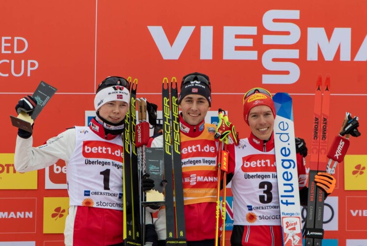 Der Sieger war derselbe wie so oft – doch heute musste Jarl Magnus Riiber etwas mehr kämpfen als gewohnt. Zwar zauberte er auf der Schanze den weitesten Sprung des Tages in den Schnee. 140,5 Meterzeigte die Anzeigetafel – dreieinhalb Meter über Hillsize. Die Führung übernahm er dennoch nicht. Die sicherte sich sein 19-jähriger Landsmann Jens Luraas Oftebro, der zwar vier Meter kürzer sprang, dank toller Haltungsnoten jedoch zwei Punkte und damit acht Sekunden vor Riiber lag. „Ich mag die Schanze und auch die Landezone. Meine Haltungsnoten haben mir sicher einige Sekunden Vorsprung gebracht“, so Oftebro.