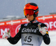 Für Team D ging es am heutigen Sonntag einen weiteren Schritt in die richtige Richtung. Mit Vinzenz Geiger (8., 130 m/ +1:20 min) und Fabian Rießle (9., 128,5 m/ +1:24 min) lagen gleich zwei DSV-Adler nach dem Springen in aussichtsreicher Position. Auch für Terence Weber (11., 132,5 m/ +1:33 min), Eric Frenzel (15., 130,5 m/ +1:40 min) und Julian Schmid (17., 130,5 m/ +1:52 min) lief es erfreulich. Weniger zufrieden mit ihren Zwischenergebnissen dürften dagegen Manuel Faißt als 24. (123 m), David Mach (41., 115 m/ +3:32 min) und Johannes Rydzek sein. Für den Oberstdorfer sprangen nur 113,5 Meter und damit der 45. Zwischenrang (+4:03 min) heraus. Beide verzichteten denn auch auf einen Start beim Langlaufrennen.