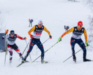 Das laufstarke Duo Geiger/ Rießle führte dahinter eine Verfolgergruppe an. Gemeinsam mit Eric Frenzel und Thomas Jöbstl (AUT) schlossen sie zu Oftebro und Bjoernstad auf. Am Ende war es Geiger, der die meisten Reserven hatte. Es gelang ihm, sich leicht von seiner Gruppe abzusetzen. 47,9 Sekunden nach Riiber lief er als Dritter ins Ziel, gefolgt von Rießle und Frenzel. Jens Oftebro wurde Sechster, Bjoernstad Siebter, Jöbstl Achter. Ilkka Herola (FIN) lief dank bester Laufzeit von Rang 26 vor auf Platz neun. Damit eroberte er auch das blaue Trikot des besten Läufers. Martin Fritz (AUT) komplettierte die Top Ten, während Rehrl auf Rang 11 zurückfiel. Die verbliebenen weiteren Deutschen beendeten das Rennen auf den Rängen 17 (Terence Weber), 20 (Manuel Faißt) und 21 (Julian Schmid).