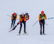 Fabian Riessle (GER), Eric Frenzel und Vinzenz Geiger bei der Aufholjagd © Sandra Volk