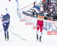 Eine Runde vor Schluss lag Herola knapp in Führung vor Riiber, auch Rehrl und Faißt waren innerhalb einer Sekunde mit dem Führungsduo. Doch dann verschärften Herola und Riiber das Tempo. „Als ich so früh in der Gruppe war, habe ich meine Taktik geändert und versucht, Kraft zu sparen für das Finale. Ich wusste, dass Jarl im Sprint nur sehr schwer zu schlagen ist“, gab der Finne Einblick in sein Dilemma. Denn auch Riiber wusste: Solange Herola ihm nicht weglief, hatte er dank seiner Sprintstärke alle Chancen auf den Sieg. Während vorne Herola und Riiber sich absetzten, versuchten Akito Watabe und Faißt mitzugehen, bekamen aber bald Besuch von hinten. Während Rehrl bereits leicht zurückgefallen war, lief Bjoernstad das Rennen seiner bisherigen Karriere und arbeitete sich Stück für Stück heran. Er ließ Faißt und Akito Watabe hinter sich und sicherte sich ungefährdet sein zweites Podium der Saison. Vorne versuchte Herola alles, um das Rennen von der Spitze weg zu gewinnen, doch Riiber bewies einmal mehr, dass er der Meister des Sprints ist. 0,2 Sekunden betrug am Ende Herolas Rückstand, doch der Finne war trotzdem zufrieden: „Mein Sprung war viel besser als gestern, ich bin zufrieden über die Fortschritte, die ich machen konnte. Jetzt bin ich nur einer mehr in der Reihe derer, die gegen Jarl im Zielsprint verloren haben, aber ich hoffe auf eine neue Chance in Schonach.“