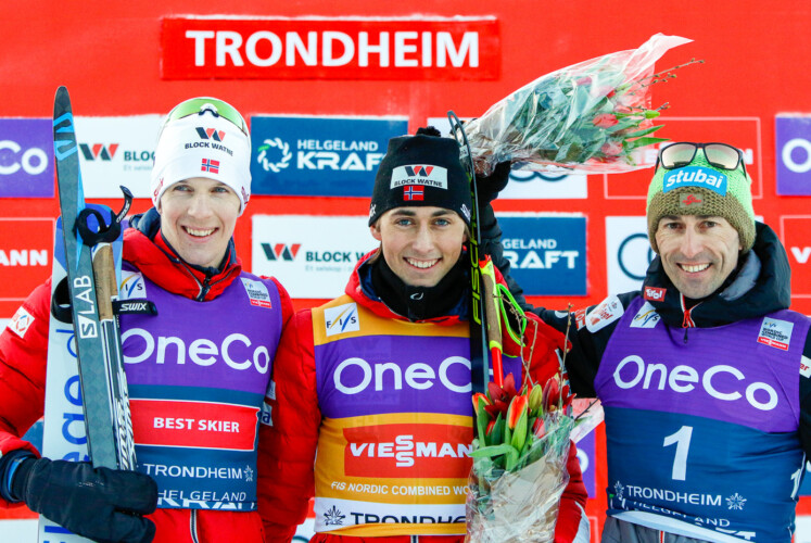 Er hat es wieder getan: Jarl Magnus Riiber ist zurück auf der obersten Stufe des Siegerpodests. Allerdings war er am heutigen Tag beileibe nicht mehr so dominant wie zu Saisonbeginn. Der Kampf um die letzten WM-Tickets scheint einigen Athleten Flügel verliehen zu haben. Allen voran Magnus Krog und Willi Denifl. Krog, der in Abwesenheit von Alessandro Pittin stellvertretend das rote Trikot des Laufbesten trägt, ist nicht gerade als bester Springer bekannt. Hier und heute ging es allerdings um viel. Nach diesem Wochenende wird bei den Norwegern die Entscheidung fallen, wer neben den bereits nominierten Jarl Riiber, Joergen Graabak, Espen Bjoernstad und Jan Schmid mit nach Seefeld fahren wird. Zudem ist Trondheim seine Heimschanze – und diesen Vorteil wusste er zu nutzen. Seine 132 Meter reichten für einen fünften Platz bei 45 Sekunden Rückstand auf den Sieger – eine hervorragende Ausgangsposition.