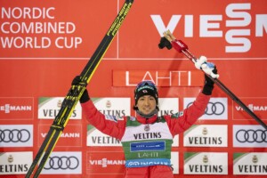 Er hat es wieder getan: Akito Watabe hat sensationell seinen Sieg aus dem Vorjahr wiederholt und den Einzelbewerb in Lahti gewonnen. Bereits am Vortag hatte er angemerkt, dass Lahti dem japanischen Kombiniererteam liege. Dass diese Diagnose zutrifft, deutete sich heute bereits im Springen an. Bei kräftigem Aufwind präsentierten sich gleich mehrere Japaner stark. Am besten machte es Ryota Yamamoto. Wie bereits in Val di Fiemme, sicherte er sich den Sprungsieg mit 126 Metern und geringerem Anlauf. Waren die Athleten vor ihm aus Luke 11 gestartet, sprang er auf Anforderung seines Trainers aus Luke 9. Anschließend verlängerte die Jury den Anlauf wieder um eine Luke, so dass die Spitzengruppe von Startgate zehn an den Start ging. Akito Watabe zeigte mit 129,5 Metern einen tollen Sprung und platzierte sich eine Sekunde hinter seinem jungen Landsmann. Den weitesten Sprung des Tages lieferte Riiber. Der Norweger, der mit der Anlage in Lahti in der Vergangenheit eher auf Kriegsfuß stand, feierte seine 130 Meter geradezu überschwänglich. Aufgrund besserer Windverhältnisse und dementsprechender Kompensationspunkte fand er sich dennoch nur auf Zwischenrang drei wieder, 28 Sekunden hinter Yamamoto.