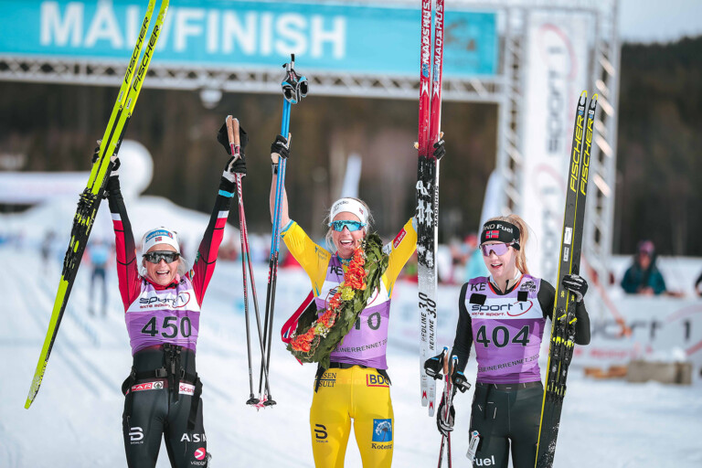 Siegerinnen Birkebeinerrennet 2022: Therese Johaug, Astrid Oeyre Slind, Emilie Fleten © Modica/NordicFocus