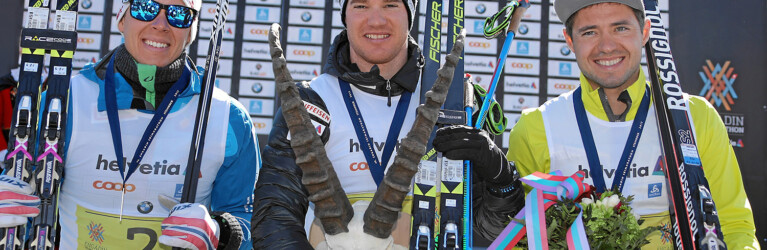 Bildergalerie Engadin Skimarathon Samedan 2017 Dario Cologna (1., M, Schweiz) , Anders Gloeersen (2., l, Norwegen) und Ilia Chernousov (3., r, Russland) heißen die Sieger des 49. Engadin Skimarathon © swiss-image.ch 1 2 3 4 5 6 7 8 9 10 11 12 13 14 © Bilder 1 - 14: swiss-image.ch;