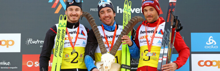 Engadin Skimarathon 2023: v.l. Tom Mancini, Arnaud Chautemps, Jason Rüesch © swiss-image.ch
