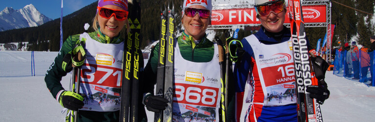 Bildergalerie Ganghoferlauf Skating Die Siegerinnen bei den Damen über 20 Kilometer: Karolin Horchler, Nadine Horchler, Hannah Ellgass © Olympiaregion Seefeld 1 2 3 4 5 6 7 8 © Bilder 1 - 2: Heinz Holzknecht; Bilder 3 - 8: Olympiaregion Seefeld;