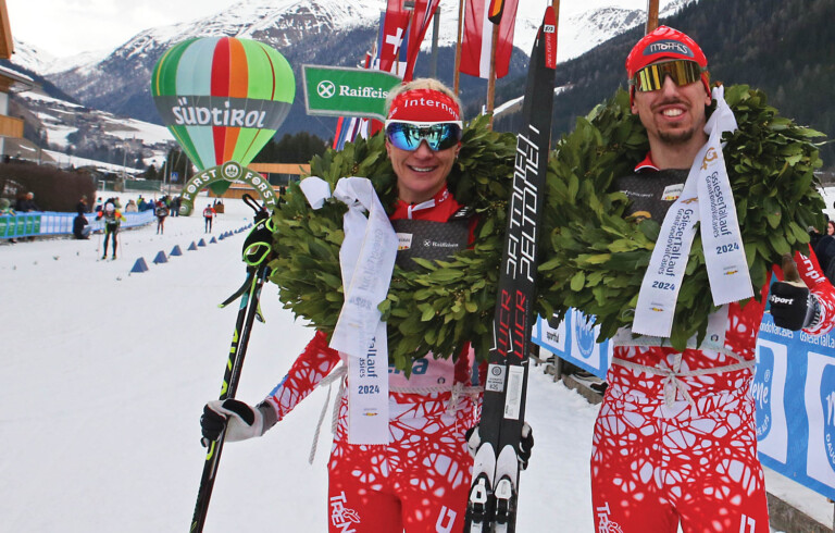 Heli Heiskanen (FIN) und Lorenzo Busin (ITA), Sieger 42km Klassisch © Newspower.it