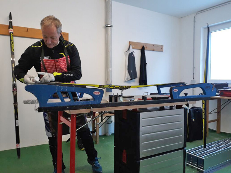 Bildergalerie Kaiser Maximilian Lauf Skating Reini Kronbichler beim Präparieren der Ski © Sigrun Hannes 1 2 3 4 5 6 7 8 9 10 11 12 13 14 15 16 17 18 19 20 21 22 23 24 © Bilder 1 - 2: Sigrun Hannes; Bilder 3 - 24: Michael Rauschendorfer/xc-ski.de;