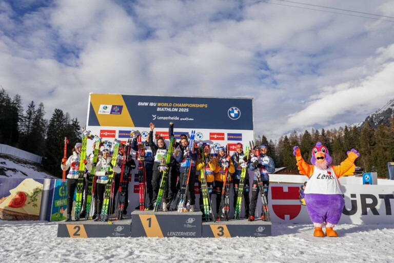 Jessica Jislova (CZE), Vitezslav Hornig (CZE), Tereza Vobornikova (CZE), Michal Krcmar (CZE), Emilien Jacquelin (FRA), Lou Jeanmonnot (FRA), Eric Perrot (FRA), Julia Simon (FRA), Selina Grotian (GER), Franziska Preuss (GER), Philipp Nawrath (GER), Justus Strelow (GER), (l-r) © Thibaut/NordicFocus