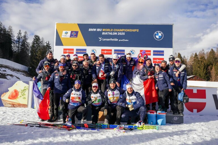 Julia Simon (FRA), Lou Jeanmonnot (FRA), Eric Perrot (FRA), Emilien Jacquelin (FRA), (l-r) © Thibaut/NordicFocus
