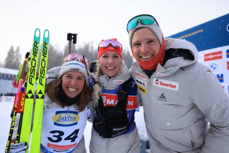 Lena Haecki-Gross (SUI), Kein Einaste (EST); coach Team Switzerland, (l-r) © Manzoni/NordicFocus