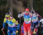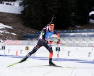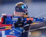 Endre Stroemsheim benötigte liegend zwei Nachlader, räumte stehend ab und ging als Erster in die Schlussrunde. Der Schweizer Sebastian Stalder war als Zweiter eingebogen und dann folgte der Österreicher Patrick Jakob. Philipp Nawrath benötigte liegend einen, konnte mit drei Nachladern im Stehen die Strafrunde vermeiden und war mit 17,7 Sekunden Rückstand als Zehnter in die letzte Runde gelaufen. Auf der Schlussrunde arbeitete er sich nach vorne und obwohl er keine Zeit aufholte, lief er hinter Stroemsheim und Emilien Claude (FRA) mit der dritten Laufzeit erst an die dritte Position, fiel dann aber wieder zurück. „Zunächst habe ich ziemlich riskiert, eine große Lücke schnell zugemacht und das musste ich dann büßen,“ so Philipp Nawrath in der ARD. Zu seinem Schießen meinte er: „Rechts und links neben einem geht es rund, ich konnte das nicht ganz ausblenden, aber mit den Nachladern habe ich es hingekriegt und da bin ich ganz zufrieden. Ich hätte aber gerne a bissl weniger Rückstand mitgegeben.“ Norwegen wechselte in Führung liegend vor Frankreich und der Ukraine. Deutschland auf Rang sechs hinter der Schweiz und Österreich mit einem Rückstand von 25,5 Sekunden auf die Spitze.