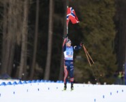 Tarjei Boe hielt die Spitzenposition vor Fabien Claude und dahinter bildete sich erst unter Führung von Danilo Riethmüller mit Simon Eder und Lukas Hofer ein Verfolgertrio. Tarjei Boe ließ den Verfolgern keine Chance, räumte ab und Claude ließ mit einem schnellen Nachlader ebenfalls alle Scheiben weiß werden. Der Schnellschütze Eder folgte als Dritter und Riethmüller kam nach einem sehr knappen Fehler auch mit einem Nachlader durch. Vor ihm waren aber die Ukraine, Schweden, Finnland und Tschechien in der Spur. Der Rückstand von Riethmüller war auf der achten Position auf 41,5 Sekunden angewachsen. In der zweiten Runde war der Norweger weiterhin vor Frankreich und Riethmüller lief weiterhin in der Gruppe mit Schweden, Finnland, Ukraine, Tschechien und Österreich. Nach zwei Nachladern im Stehendanschlag war Tarjei Boe weiterhin vorne. Frankreich musste ebenso zwei Mal nachladen, blieb aber erster Verfolger. Finnland kam minimal früher als Deutschland zurück in die Schlussrunde und hinter dem Deutschen sortierten sich Tschechien, Italien und Estland ein. Tarjei Boe lief eine hervorragende Schlussrunde, setzte sich deutlich ab vom Franzosen und dahinter schob sich Riethmüller erst mit kräftigen Schüben am Übergang eines Anstiegs am Finnen vorbei um ihn und auch den Tschechen dann wieder passieren lassen zu müssen. Norwegen wechselte zur Halbzeit mit einem Vorsprung von 25,9 Sekunden zu Frankreich auf Sturla Holm Laegreid, den derzeit Führenden im Gesamtweltcup. Mit 51,8 Sekunden Rückstand auf die Spitze kam für Deutschland Johannes Kühn ins Rennen. Danilo Riethmüller erklärte in der ARD, „ich habe versucht rhythmusorientiert zu schießen“ und erklärte, dass es bedeutet „wenn der Atemstopp kommt zu schießen, aber mir fehlt manchmal auch ein bißchen der Mum, das im Wettkampf durchzuziehen.“