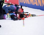 Der Norweger Sturla Holm Laegreid räumte liegend an der Spitze sicher ab, der Rückstand von Eric Perrot wuchs nach einem Nachlader auf 37,7 Sekunden und Johannes Kühn überzeugte mit fünf Treffer und war auf die dritte Position vorgerückt. Hinter Kühn macht der US-Amerikaner Campbell Wright mächtig Dampf und war deutlich näher an Kühn herangerückt. Laegreid räumte mit zwei Randtreffern ab und Eric Perrot machte es ihm in schnellem Tempo nach. Wright ging vor dem Schießstand noch an Kühn vorbei, gemeinsam standen sie bereit und während Kühn sich schadlos hielt, musste der Amerikaner zwei Mal nachladen. „Am Schießstand war es eine meiner besten Staffeln,“ so Kühn, der später als Bronze sicher war von seinen Emotionen übermannt wurde. „Ich wollte mir am Anfang etwas fürs Ende aufheben, aber am Ende war nichts mehr da. Ich habe meine Beine nicht mehr vom Boden weggebracht.“