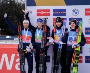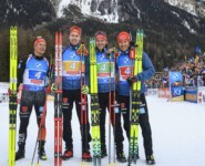 Johannes Thingnes Boe übernahm zum letzten Mal in seiner Karriere eine WM-Staffel und hatte 46,5 Sekunden Vorsprung vor dem Franzosen Quentin Fillon Maillet. Philipp Horn kam für Deutschland knapp eine Minute später mit dem Schweden Martin Ponsiluoma an den Skienden, dieser dicht gefolgt von USA und Tschechien. J. T. Boe baute mit einer schnellen Fünferserie im Liegen seinen Vorsprung weiterhin aus, der Franzose räumte mit einem Nachlader ab und Philipp Horn verfehlte drei Scheiben. „Ich war fast geschockt, als gleich drei daneben gingen. Nach drei war es schon eng, da musste ich mich zusammenreißen,“ so Horn nach dem Rennen. Er schaffte es alle drei Reservepatronen ins Ziel zu bringen. Neben ihm kam Sebastian Samuelsson mit einem Nachlader aus und damit war Horns Vorsprung auf Schweden dahin. Norwegen mit Gold und Frankreich mit Silber schien sicher, aber dahinter entbrannte ein heißer Kampf um Bronze, der sich erst am Schießstand vorentscheiden sollte. Samuelsson hielt sich auf der Strecke stets klug hinter Horn und vorne kam mit über einer Minute Vorsprung J. T. Boe zum letzten Anschlag. Er setzte fünf Treffer und lief dem sicheren Titel entgegen. Fillon Maillet lud einmal nach und war auf dem Weg Richtung Silber. Nun ging es um Bronze: Gleichzeitig gaben Sebastian Samuelsson und Philipp Horn den ersten Schuss ab. Horn wurde immer schneller, setzte auch den letzten Treffer während Samuelssons letzter Schuss nicht ins Ziel kam. Er kämpfte für seinen letzten Treffer und 13,6 Sekunden hinter Horn kam der Schwede in die Schlussrunde. Dieser hatte den schnellen Giacomel mit einem Abstand von 17.7 Sekunden hinter sich. Mit allen verfügbaren Kräften brachte Philipp Horn die Staffel mit der schnellsten Schlussrunde als Dritter ins Ziel. „Das war die härteste Runde, die ich je hatte. Ich habe alles gegeben und noch viel mehr. Ich dachte ich schaffe es nicht mehr, jetzt gehen gleich die Lichter aus und ich liege im Schnee. Schweden mit Viktor Brandt, Jesper Nelin, Martin Ponsiluoma und Sebastian Samuelsson wurden nach einer Strafrunde und elf Nachladern Vierte, vor den Italienern Daniele Capellari, Lukas Hofer, Elia Zeni und Tommaso Giacomel auf Platz fünf (9 Nachlader). Die Schweizer Sebastian Stalder, Joscha Burkhalter, James Pacal und Niklas Hartweg erreichten Rang sieben (9 Nachlader) und Österreich mit Patrick Jakob, Simon Eder, Fredrik Mühlbacher und David Komatz landete auf Rang 12 (1 Strafrunde/10 Nachlader).