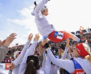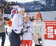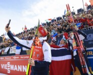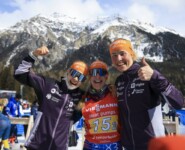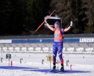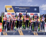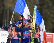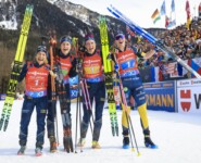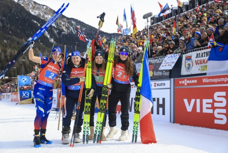 Der Himmel über der Roland Arena zeigte sich eher wolkenverhangen, die Sonne kam leicht durch, es herrschten warme Bedingungen und die Strecke wurde im Laufe des Rennens immer tiefer. 22 Staffeln starteten und 16 von ihnen kamen ins Ziel. Letztes Jahr in Nove Mesto wurde Frankreich Weltmeister vor Schweden und Deutschland. Nach einer großartigen Vorstellung der vier Französinnen Lou Jeanmonnot, Oceane Michelon und Justine Braisaz-Bouchet in der Lenzerheide bringt Julia Simon mit der französischen Fahne und deutlichem Vorsprung die Staffel über die Ziellinie. Und das obwohl sie sich bereits am Schießstand ausgiebig in Richtung der Trainer und Fans verbeugte. Ihre Schlussrunde genoss sie förmlich, klatschte Betreuer und Fans gleichermaßen an der Strecke ab und hatte sogar noch einen Schreckmoment, als die Bande samt Zuschauer in ihre Spur kippte. Am Ende verbeugte sie sich vor der Ziellinie noch einmal vor den Fans auf der Tribüne und war dennoch mit über einer Minute Vorsprung im Ziel. Schnell in der Spur und vor allem mit einer hervorragenden Schießquote mit nur vier Nachladern wurde das französische Quartett in Top-Besetzung verdient Weltmeister in der Lenzerheide.