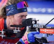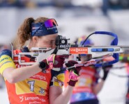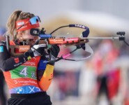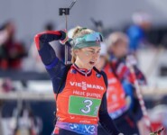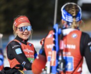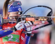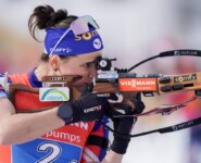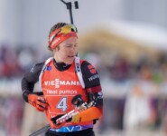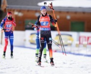 Die französische Startläuferin Lou Jeanmonnot hielt das Tempo schon in der ersten Runde richtig hoch, die Schwedin Magnusson ging mit und Sophia Schneider lief ihr Rennen. Schnell räumte die Französin ab und Norwegen folgte mit fünf Treffern. Sophia Schneider benötigte zwar nur einen Nachlader, dennoch wuchs ihr Rückstand auf 22,1 Sekunden an. „Ich wusste, dass die Lou von Anfang an gut losmarschieren wird. Ich habe versucht mein Tempo zu laufen, bin nicht mitgegangen und versucht eine gute Position zu halten,“ so Sophia Schneider nach dem Rennen. Die Französin machte vorne kräftig Druck und baute ihren Vorsprung Richtung Stehendanschlag auf alle Verfolgerinnen weiter aus. Ihre fünf Scheiben waren bereits weiß, bevor die nächsten zum Stand kamen. Karoline Offigstad Knotten folgte ihr, Sophia Schneider kassierte eine Strafrunde. Dort traf sie auf Lea Rothschopf für Österreich und Elisa Gasparin für die Schweiz. Ein denkbar ungünstiger Einstand, da der Rückstand eingangs der Schlussrunde bereits 1:23 Minuten betrug. „Ich habe die Waffe nicht ruhig bekommen und es wird dann nicht leichter. Ich wollte den Letzten unbedingt treffen, aber ich habe einfach den Stress von der Strecke beim Schießen nicht wegbekommen,“ so eine sehr enttäuschte Sophia Schneider. „Es tut mir sehr leid für die Mädels, leider.
