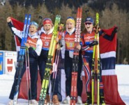Karoline Offigstadt Knotten als Startläuferin des norwegischen Teams kam mit zwei fehlerfreien Schießeinlagen gut ins Rennen, übergab allerdings bereits mit 32 Sekunden Rückstand hinter Frankreich an Ingrid Landmark Tandrevold. Mit zwei Nachladern im Liegen fiel sie bereits zurück und nachdem sie im Stehendschießen eine Strafrunde kassierte und auch läuferisch nicht zu den Besten zählte, konnte sie ihre Staffel erst als Elfte mit einem Rückstand von 1:51 Minuten an Ragnhild Femsteinevik übergeben. Sie blieb liegend fehlerfrei und obwohl sie stehend zwei Reservepatronen benötigte, brachte sie ihre Staffel mit der zweiten Gesamtlaufzeit in ihrer Runde auf den fünften Platz zurück. Maren Kirkeeide hielt sich liegend ebenfalls schadlos und hatte auch durch einen Fehlschuss im Stehendschießen, den sie mit einer Reservepatrone parierte, von hinten nichts mehr zu befürchten. Mit der schnellsten Gesamtlaufzeit brachte sie die norwegische Damenstaffel nach einer Strafrunde und acht Nachladern auf dem Silberrang ins Ziel.