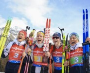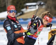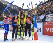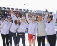 An die Französinnen an der Spitze war nicht heranzukommen und mit 1:19,9 Minuten Vorsprung kam Julia Simon als Schlussläuferin ins Rennen. Slowenien, Schweden, Slowakei, Norwegen und Franziska Preuß (+ 2:07,2 Min.) folgten. Auf einen Medaillenrang fehlten dem Deutschen Team zu diesem Zeitpunkt 45 Sekunden. Die Französinnen waren enteilt, nachdem Julia Simon liegend eine sichere Fünferserie schoss. Elvira Oeberg kam als nächste zum Anschlag, verfehlte zwei Scheiben und kassierte eine Strafrunde. Die Norwegerin Kirkeeide räumte ab und war an die zweite Position vorgerückt. Mit fünf überragenden Treffern schob sich Franziska Preuß an die Vierergruppe aus Schweden, Slowenien und der Slowakei heran und hatte sich auch auf die fünfte Position vorbei geschoben. Zum Showdown bot Julia Simon fünf schnelle Treffer, verneigte sich am Schießstand vor den Trainern und dem Publikum. Hielt unterwegs bei ihren Betreuern an und feierte schon auf der Schlussrunde. Und dann kam es noch zu einem Schreckmoment, als beim Abklatschten an der Strecke die Zuschauer samt der Bande in die Strecke fielen und Julia Simon beinahe noch strauchelte. Die Norwegerin Kirkeeide kam 1:34 Minuten nach der Französin zum letzten Anschlag, einen Fehler korrigierte sie mit einer Reservepatrone und bog als Zweite in die Schlussrunde. Und dann kamen vier Athletinnen gleichzeitig zum letzten Schießen. Die Schwedin musste nachladen, Preuß für die letzte Scheibe auch, aber erst der zweite Nachlader saß und damit war die Chance auf Bronze vergeben, da auch Anna Andexer für Österreich und Maria Remenova (SVK) bereits abgeräumt hatten. „Es ärgert mich, es wurde von Schuss zu Schuss unruhiger und der Letzte ist dann weg. Ich glaube ich habe es noch einmal spannend gemacht.“ Zur Strecke meinte Preuß: „Es ist schon an einigen Stellen tief, manchmal greift das Salz mehr oder weniger, dementsprechend der Ski und von daher hat man immer wachsam sein müssen. Aber an dem hat es nicht gelegen. Hie und da ein Fehler zu viel in der ganzen Mannschaft, dann ist auch so ein Tag dabei.“