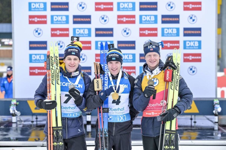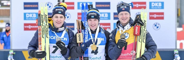 Martin Ponsiluoma (SWE), Sebastian Samuelsson (SWE), Johannes Thingnes Boe (NOR), (l-r) © Reichert/NordicFocus