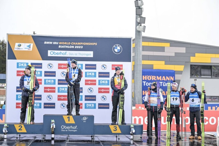 Martin Ponsiluoma (SWE), Sebastian Samuelsson (SWE), Johannes Thingnes Boe (NOR), Sturla Holm Laegreid (NOR), Andrejs Rastorgujevs (LAT), Quentin Fillon Maillet (FRA), (l-r) © Reichert/NordicFocus