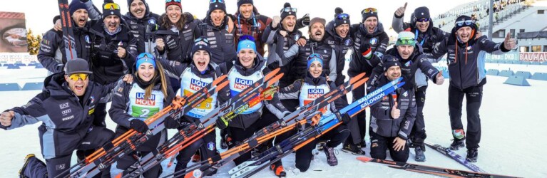 Dorothea Wierer (ITA), Didier Bionaz (ITA), Tommaso Giacomel (ITA), Lisa Vittozzi (ITA), (l-r) © Manzoni/NordicFocus