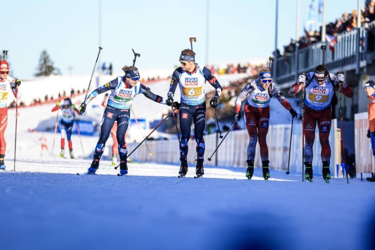 Marte Olsbu Roeiseland (NOR), Sturla Holm Laegreid (NOR), (l-r), Lisa Theresa Hauser (AUT), David Komatz (AUT), (l-r) © Manzoni/NordicFocus