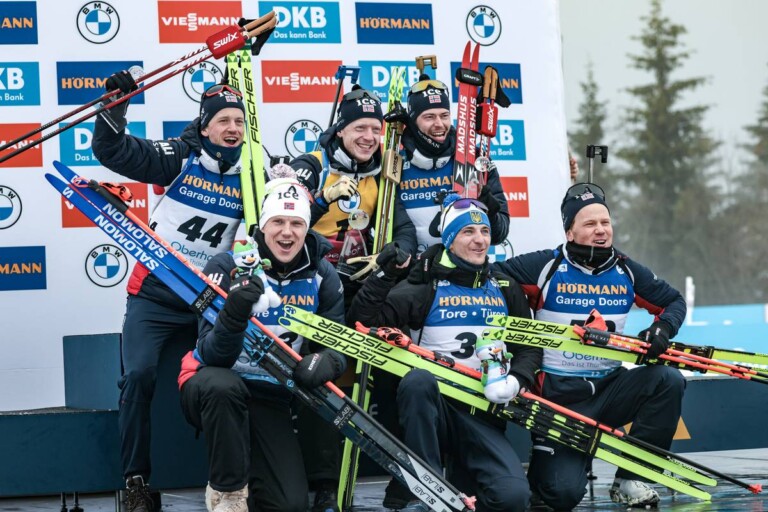 Tarjei Boe (NOR), Johannes Thingnes Boe (NOR), Sturla Holm Laegreid (NOR), Vetle Sjaastad Christiansen (NOR), Quentin Fillon Maillet (FRA), Johannes Dale (NOR), (l-r) © Manzoni/NordicFocus