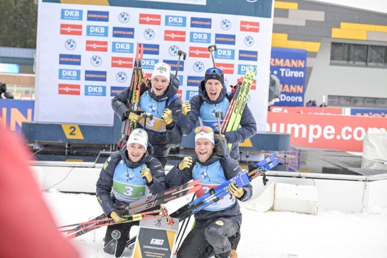 Emilien Jacquelin (FRA), Quentin Fillon Maillet (FRA), Fabien Claude (FRA), Antonin Guigonnat (FRA), (l-r) © Reichert/NordicFocus