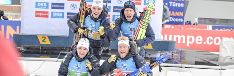 Emilien Jacquelin (FRA), Quentin Fillon Maillet (FRA), Fabien Claude (FRA), Antonin Guigonnat (FRA), (l-r) © Reichert/NordicFocus