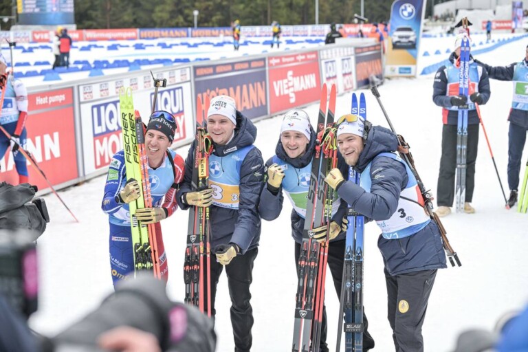 Quentin Fillon Maillet (FRA), Emilien Jacquelin (FRA), Fabien Claude (FRA), Antonin Guigonnat (FRA), (l-r) © Reichert/NordicFocus