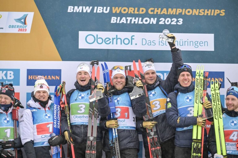 Vetle Sjaastad Christiansen (NOR), Fabien Claude (FRA), Antonin Guigonnat (FRA), Emilien Jacquelin (FRA), Quentin Fillon Maillet (FRA) © Reichert/NordicFocus